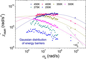We use 7Li NMR to study the ionic jump motion in ternary 0.5Li2S+0.5[(1–x)GeS2+xGeO2] glassy lithium ion conductors. Exploring the “mixed glass former effect” in this system led to the assumption of a homogeneous and random variation of diffusion barriers in this system. We exploit that combining traditional line-shape analysis with novel field-cycling relaxometry, it is possible to measure the spectral density of the ionic jump motion in broad frequency and temperature ranges and, thus, to determine the distribution of activation energies. Two models are employed to parameterize the 7Li NMR data, namely, the multi-exponential autocorrelation function model and the power-law waiting times model. Careful evaluation of both of these models indicates a broadly inhomogeneous energy landscape for both the single (x=0.0) and the mixed (x=0.1) network former glasses. The multi-exponential autocorrelation function model can be well described by a Gaussian distribution of activation barriers. Applicability of the methods used and their sensitivity to microscopic details of ionic motion are discussed.