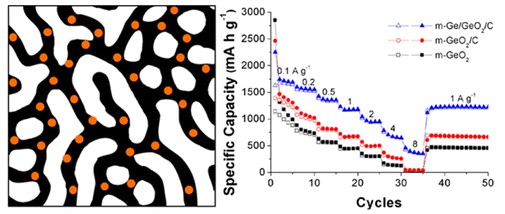 Mesoporous Ge/GeO2/Carbon Lithium-Ion Battery Anodes with High Capacity and High Reversibility