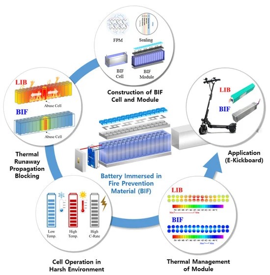 Lithium-Ion Batteries (LIBs) Immersed in Fire Prevention Material for Fire Safety and Heat Management